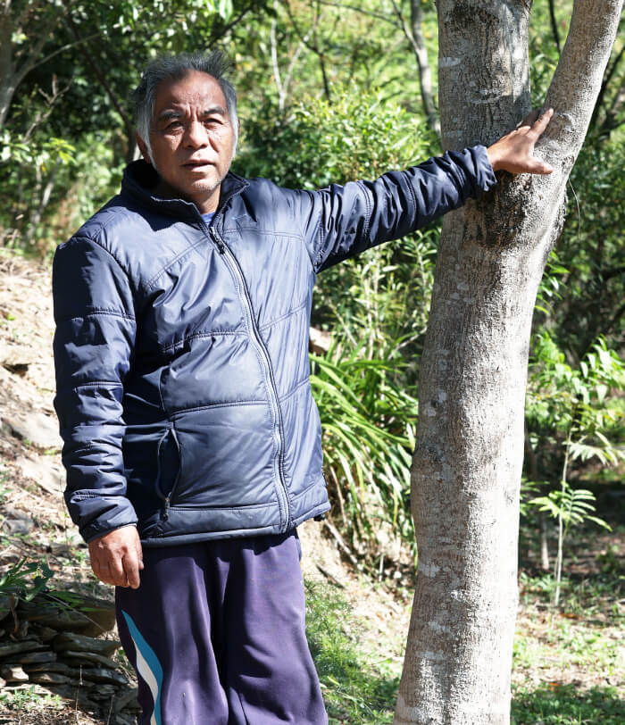 宋文生在霧台鄉大姆姆山系種樹,種樹場域有三大區塊,第一區是早在20多年前,他與父母親一起種植,如今大樹成林,一年回去巡一次。第二種樹區約有10公頃已成林,一年回去陪伴一兩個月除草。第三種樹區約2公頃、800棵樹去年全數種植,還要陪伴5年,正是細心照料初期。